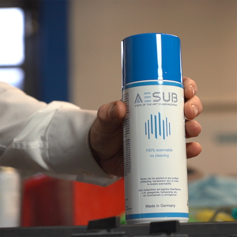 AESUB Green was developed for large-scale and automated scanning. The vanishing 3D scanning spray has a layer thickness of ~10-20 µm and evaporates within approximately 6 hours.