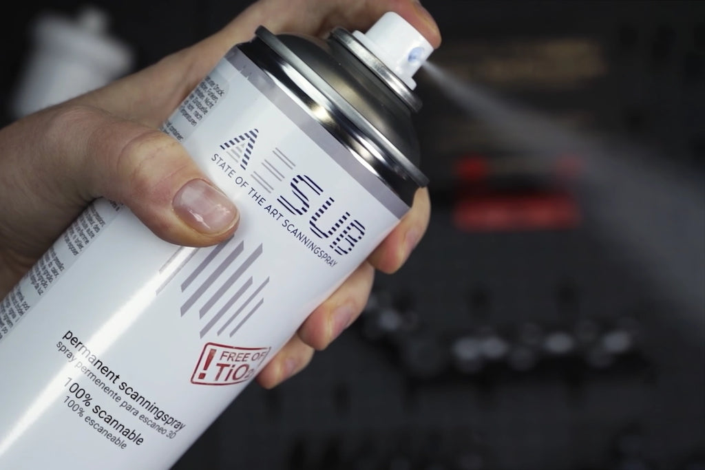 AESUB White is a state-of-the-art semi-permanent 3D scanning spray developed by 3D scanning experts. The spray provides a very thin and homogeneous coating. It's the answer to 3D scanning challenging surfaces including dark, reflective, transparent, or highly textured surfaces. What makes this spray special is that it is 100% free of titanium dioxide nano particles (TiO2).