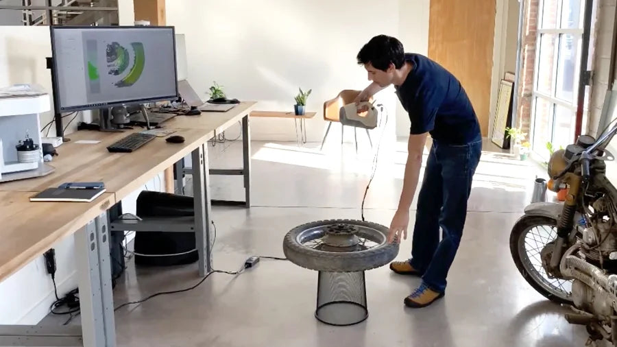 Artec Eva is a structured-light 3D scanner that is ideal for making quick, textured, and accurate 3D models of medium-sized objects such as a human bust, an alloy wheel, or a motorcycle exhaust system. It scans fast, capturing precise measurements in high resolution.