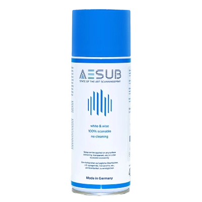 The AESUB brand of 3D scanning spray provides an optimal coating for challenging surfaces including dark, transparent, and shiny objects, as well as objects with deep pockets. Best known for its revolutionary vanishing 3D scanning sprays, AESUB also has a semi-permanent option that can be wiped off when cleaned.