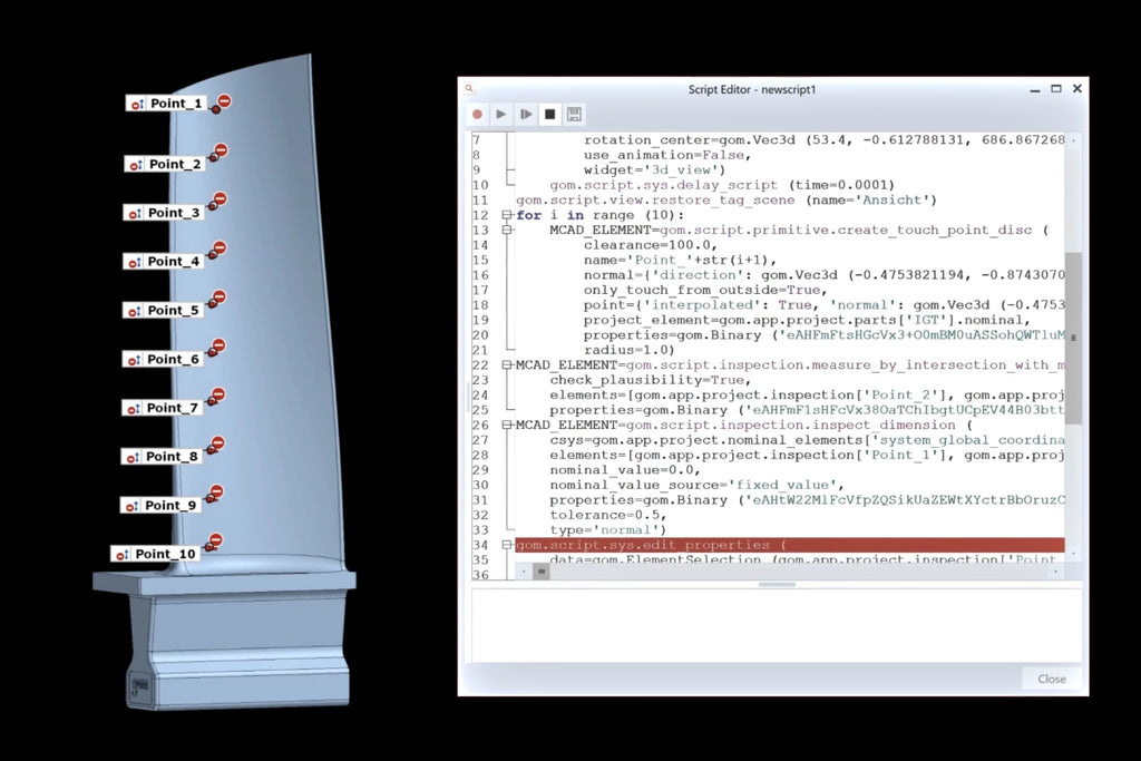 ZEISS INSPECT uses the Python scripting language, enabling you to convert all actions within the software into editable Python scripts via the script recorder. Automation reduces the effort required for repetitive tasks.